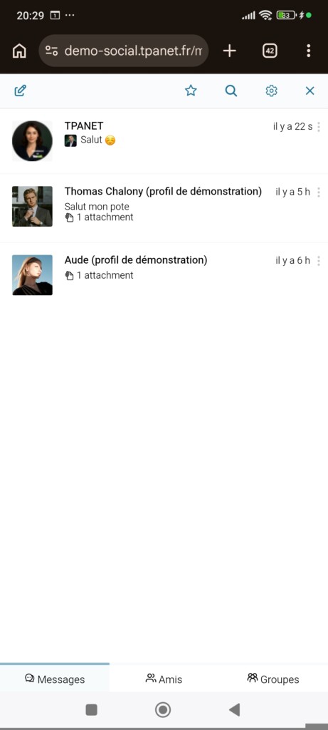 - Messages (vous trouverez toutes vos conversations privées et de groupe)