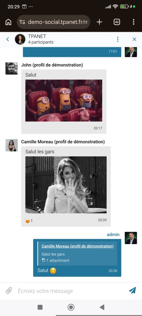 La fonction tchat que propose TPANET, dès la version Essentiel, dispose elle aussi de très nombreuses fonctionnalités :